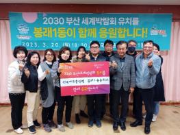 영도구 봉래1동 자유총연맹은 지난 3월 20일'2030 부산세계박람회'유치를 위한 릴레이 응원을 펼쳤다.국제 박람회기구 실사단 방한을 앞두고 영도구 전역에 걸쳐 유치 열기가 뜨거운 가운데 봉래1동 자유총