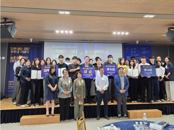 천안시는 24일 라마다앙코르에서 농촌마을만들기 아이디어 공모전 ‘대학생이 간다’ 공모전 시상식 및 10주년 기념식을 개최했다. 올해 10회째를 맞은 대학생이 간다는 농촌마을만들기 아이디어 공모전으