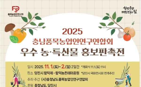 충남도 농업기술원은 다음달 1일부터 2일까지 당진시 합덕농촌테마공원에서 ‘충남 우수 농·특산물 홍보판촉전’을 개최한다고 29일 밝혔다. 지역에서 생산된 품질 좋은 농산물의 판로 확대와 소비 활성화