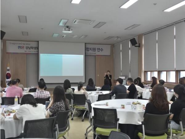 울산 강남교육지원청은 25일 직원들을 대상으로 교육부가 주관하는 ‘찾아가는 학생 맞춤 통합지원 연수’를 열고 학생 맞춤 통합지원 역량을 강화한다. 이번 연수에는 교육지원청 소속 직원 40여 명이 참