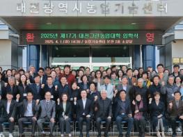 대전시농업기술센터는 4월 1일 대전농업의 미래를 이끌어갈 전문 농업인 양성 과정인 2025년 제17기 대전그린농업대학 입학식을 성황리에 개최했다.이날 입학식에는 이택구 대전광역시 정무경제과학부시장을