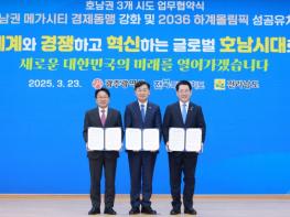 전북특별자치도와 전라남도, 광주광역시는 23일 나주시청 대회의실에서 3개 시도지사가 함께 모여 2036 전주하계올림픽 성공 유치 등 상호 협력을 통해 호남 지역 경제를 활성화 및 상생발전을 도모하기 위