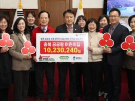 충청북도어린이집연합회(공공형어린이집 특별분과)는 취약계층 가정 지원을 위한 성금 10,230,240원을 충북사회복지공동모금회에 기탁했다. 이번 기탁식은 충청북도 김수민 정무부지사, 이민성 충북사회복지