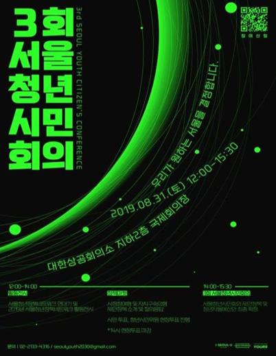 서울시는 31일(토) 12시~15시30분 대한상공회의소 국제회의장에서 ‘제3회 서울청년시민회의’를 열고, 96개 정책과제 중 비예산사업을 제외한 83개 정책과제에 대한 최종 사업비와 예산편성안을 온.오프라인 투표를 통해 최종 확정한다고 밝혔다. 청년 정책에 관심 있는 시민이라면 누구나 참관할 수 있으며, 온라인 투표 참여도 가능하다.