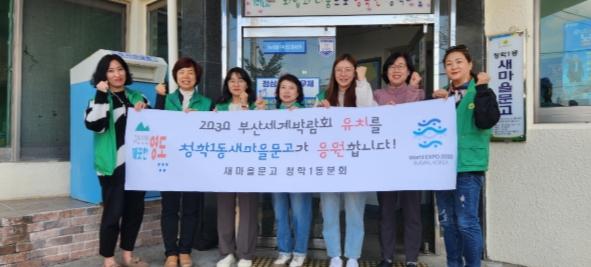 장지현 청학1동장은 “2030 부산세계박람회 유치 응원에 적극 동참해 주신 새마을문고 회장 및 회원분들께 감사드린다. 부산세계박람회 유치를 위해 동에서도 적극 홍보에 나서겠다.”고 화답했다.