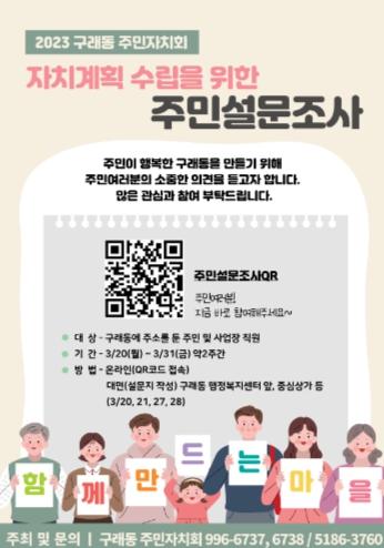 구래동은 이번 ‘주민설문조사’를 통해 주민과 지역의제를 공유하고 의제별 해결과제를 선정한다는 방침이다.