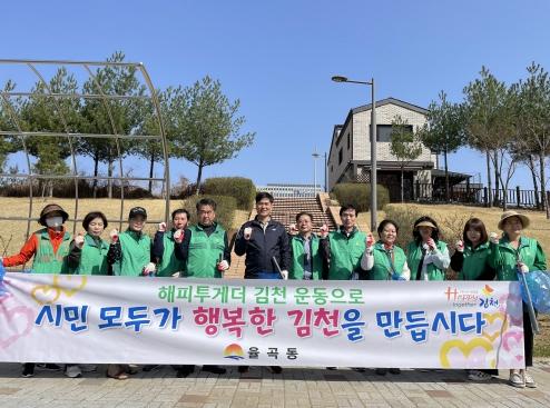 [신문솔루션, 브레인기자] 김천시 율곡동에서는 지난 21일 청결한 율곡동을 만들기 위해 새마을지도자협의회 회원 20여명이 참석한 가운데 안산공원 및 율곡공원, 석정천 일대에서 'Happy together 청결운동'을 실시했다.
