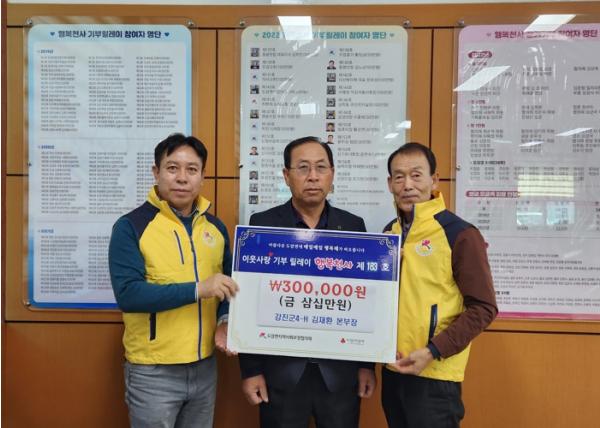신기마을 김준호 이장은 2020년 10만 원 기부를 시작으로 2021년 또한 10만 원, 2022년 20만 원을 기탁해, ‘이웃사랑 기부릴레이 행복천사’에 올해까지 4년 연속 동참해 이웃사랑에 남다른 열정을 보여주고 있다.