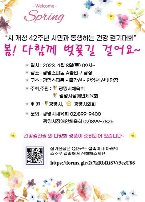 [신문솔루션, 브레인기자] 광명시에서는 광명시체육회와 광명시 장애인체육회 공동 주관으로 오는 4월 8일 토요일 오전 9시 광명스피돔에서 ‘2023년 시민과 동행하는 건강걷기 대회’가 열린다.