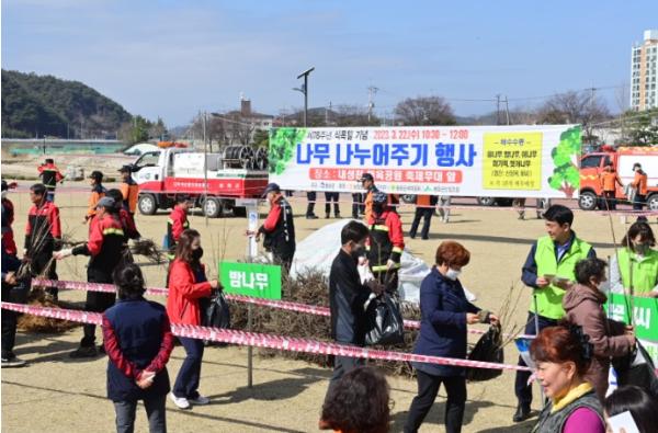 [신문솔루션, 브레인기자] 봉화군은 22일 봉화생활체육공원 축제무대 앞에서 제78회 식목일을 기념한 ‘나무나누어주기 행사’를 실시했다.