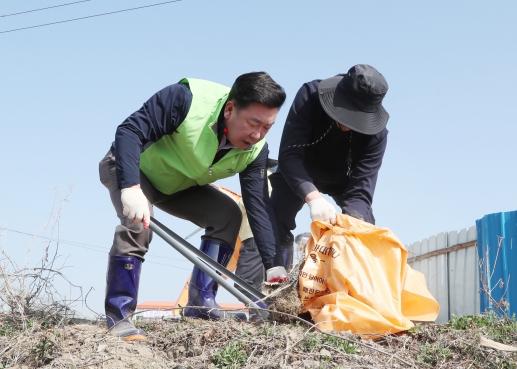 이범석 청주시장도 서원구 현도면 외천천 일대에서 청주시 직원 및 관련 단체 250여명과 함께 정화 활동에 참여했다.