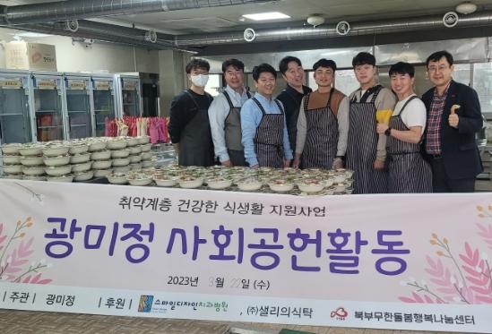 [신문솔루션, 브레인기자] 광주시 청년사업가 모임 광미정은 22일 광주시 북부 무한돌봄 행복나눔센터를 통해 관내 취약계층을 대상으로 수비드 닭가슴살 샐러드 200개를 전달했다.