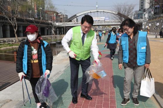 [신문솔루션, 브레인기자] 관악구가 자원봉사 실천으로 기후위기 극복을 위해 3월 22일 별빛내린천(도림천)에서 ’노(No) 플라스틱 플로깅 데이’를 가졌다.