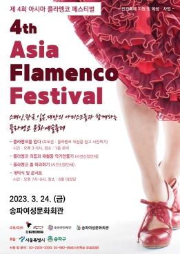 '4회 아시아 플라멩코 페스티벌'은 한국예술 플라멩코문화원과 송파여성문화회관 주최로 구민들에게 보다 다채로운 문화 향유 기회를 드리고자 마련한 행사이다.
