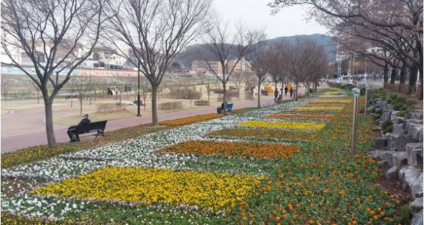 [신문솔루션, 브레인기자] 벚꽃이 꽃망울을 터트린 가운데 경산시 공원녹지과는 겨울을 지나 찾아온 봄의 기운을 흠뻑 느낄 수 있게 '남천둔치 봄꽃 어울림 꽃화단'을 조성하고 있다고 22일 밝혔다.