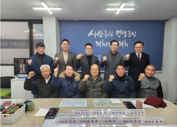 [신문솔루션, 브레인기자] 경기도의회 김정영(여성가족평생교육, 국힘·의정부1), 이영봉(안전행정, 민주·의정부2), 최병선(경제노동, 국힘·의정부3), 오석규(문화체육관광, 민주·의정부4) 도의원은 지난 9일 도의회 의정부상담소에서 한국노총 경기중북부지부 백호 의장과 임원진들을 만나 신년 인사 및 정담회 시간을 가졌다.