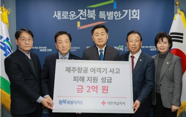 [신문솔루션, 브레인기자] 전북특별자치도는 전남 제주항공 여객기 사고로 슬픔에 빠진 유가족들을 위해 재해구호기금 2억 원을 대한적십자사에 기탁하며 적극적인 지원에 나섰다.