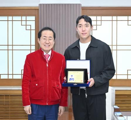 홍준표 대구광역시장은 “원태인 선수는 우리 지역 출신으로 대구를 대표하는 스포츠 스타이며, 그의 뛰어난 실력과 긍정적인 이미지는 대구의 매력을 널리 알리는 데 큰 역할을 할 것이다”며, “앞으로도 지역을 홍보하고 시민들에게 자긍심을 심어주는 홍보대사로 활약해 주길 바란다”고 당부했다.