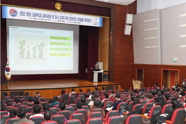 연수 내용은 ▲2022 개정 고등학교 교육과정의 이해, ▲고교학점제에 따른 학생 맞춤형 교육과정 운영 및 진로․학업설계 지도의 중요성, ▲‘최소 성취수준 보장지도’ 운영 등 올해 변화하는 핵심 사항들이다.