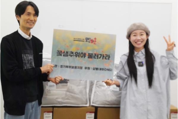 이번에 봉선아 대표가 후원한 물품은 연탄 600장, 이동형 온풍기 4대, 극세사 차렵이불 4세트로 약 150만원 상당이다. 봉선아 대표는 작년 겨울 재가대상자들을 위해 연탄을 기부하면서 ‘경기 북부 지역은 다른 지역에 비해 추위가 오래 지속되는 만큼 내년 봄에 연탄을 추가 기부하겠다.’라고 약속한 바 있다.