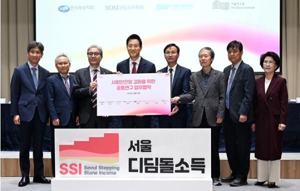 한편 이날 디딤돌소득을 비롯한 미래 소득보장제도에 대한 심도있는 연구를 위해 서울시는 5개 국내학회(▴한국사회복지정책학회 ▴한국경제학회 ▴한국노동경제학회 ▴한국재정학회 ▴안심소득학회)와 2개 시책연구기관(▴서울시복지재단 ▴서울연구원)과 업무협약을 체결했다.
