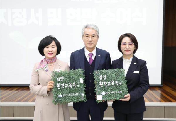 [신문솔루션, 브레인기자] 경상남도교육청은 도내 18개 전 교육지원청을 ‘2025년 환경교육 특구’로 지정하고 25일 본청 대강당에서 지정서와 현판을 수여했다.
