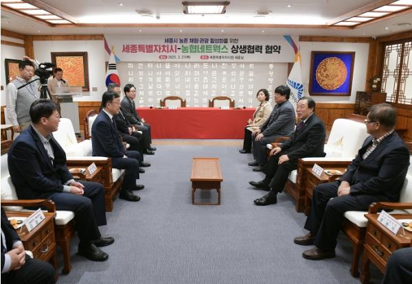 [신문솔루션, 브레인기자] 세종특별자치시가 27일 시청 5층 세종실에서 농협네트웍스와 세종 농촌 체험·관광 활성화를 위한 상생협약을 체결했다.