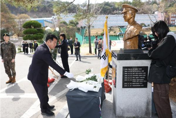 기념식은 이정선 교육감을 비롯해 강기정 시장, 김석기 광주지방보훈청장, 김병내 남구청장, 박명식 문성중 교장, 보훈가족, 군 장병, 학생 500여 명 등이 참석한 가운데 고 서정후 하사 흉상 참배, 추모사 낭독, 서해수호 55용사 다시 부르기 등 순으로 진행됐다.