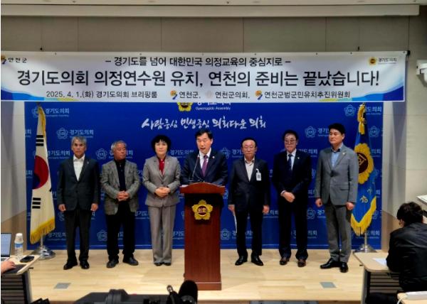 경기도의회는 2030년 7월 개원을 목표로 사업비 최대 900억 원을 들여 약 2만 265㎡ 규모의 의정연수원 설립을 계획하고 경기도 내 시·군을 대상으로 지난 3월 31일까지 건립부지 공모 신청을 접수했으며, 공모에는 연천군을 비롯해 안성시, 가평군, 동두천시, 남양주시, 구리시 등 6개 시·군이 신청서를 제출했다.
