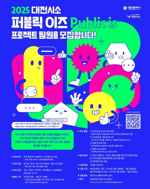 [신문솔루션, 브레인기자] 대전시는 시민참여 정책제안 플랫폼 ‘대전시소’를 통해 시민 참여형 디자인 거버넌스 프로젝트 ‘퍼블릭이즈(Public is)’를 올해 처음으로 운영하며, 시민 아이디어 실현을 위한 실행팀을 공개 모집한다.