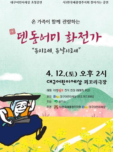 (사)한국예총영주지회가 준비한 이번 공연은 경북 영주 지역의 전통 화전가인 ‘덴동어미’ 이야기를 현대적으로 각색한 것이며, 혼란스럽고 암울한 시대적 배경 속 덴동어미가 모든 상처와 역경을 극복하는 이야기로, 어린이들에게 희망과 긍정의 메시지를 담고 있다.