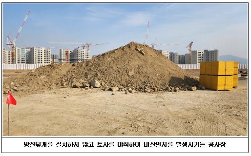 그 밖에 업체는 인적이 뜸한 도심 외곽지역, 산업단지 내에서 비산먼지를 발생시키는 사업(공사)을 운영하면서 방진덮개 미설치 등 비산먼지 발생 억제 조치를 소홀히 해 적발됐다.