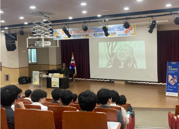 지난 9일 첫 수업은 서귀포고등학교에서 김영화 작가를 초청하여프로그램을 진행했다.