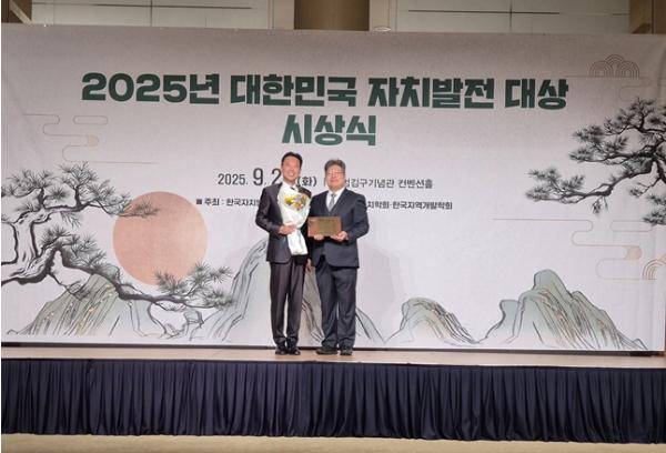 '대한민국 자치발전 대상'은 한국자치발전연구원이 주관하며, 지방자치 발전과 주민 삶의 질 향상에 기여한 국회의원, 지방의원, 공직자, 민간단체 등을 선정해 시상하는 상이다.