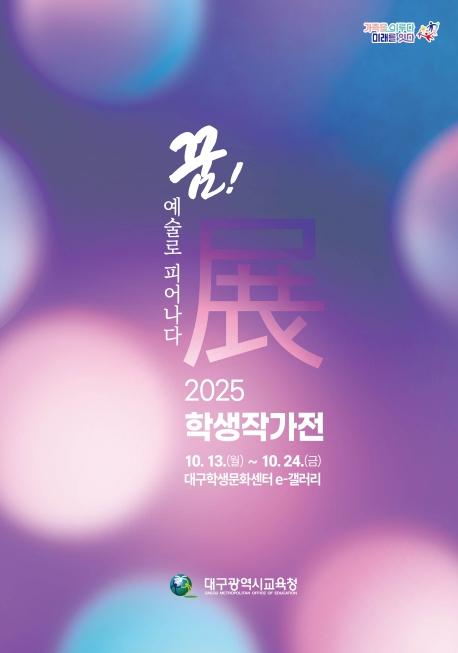 • [신문솔루션, 브레인기자] 대구시교육청은 10월 13일 부터 10월 24일까지 대구학생문화센터 e-갤러리에서 학생들의 꿈과 예술적 재능을 꽃피우는 특별한 전시, 2025 대구학생작가전 ‘꿈! 예술로 피어나다展’을 개최한다.