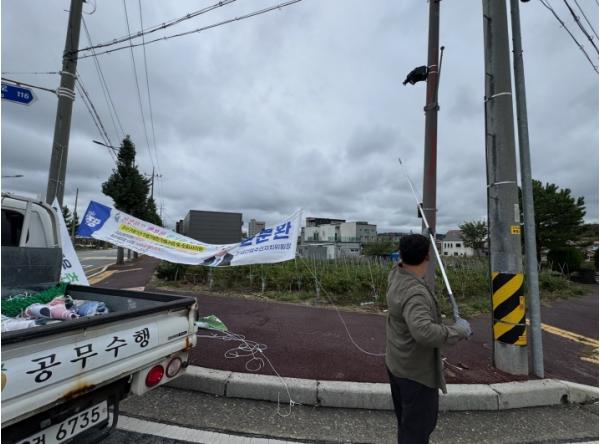 군은 지정게시대 외 무단 설치 및 정당현수막 설치 개수·표시기간 위반 사례를 점검하고 철거 및 재발 방지 안내 계도에 나서고 있다.