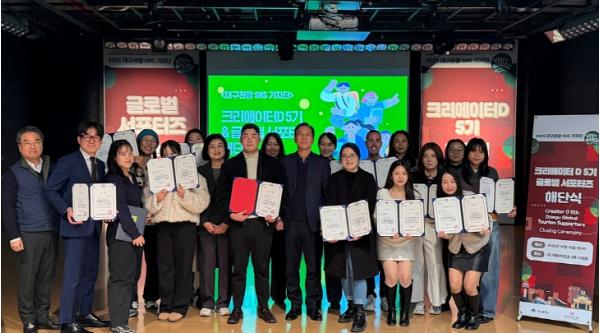 • [신문솔루션, 브레인기자] 대구광역시와 대구문화예술진흥원은 지난 12월 16일 대구예술발전소 수창홀에서 대구관광 SNS 기자단 ‘크리에이터D’와 외국인 기자단 ‘글로벌 서포터즈’ 대상으로 해단식을 개최하며 성황리에 활동을 종료했다.
