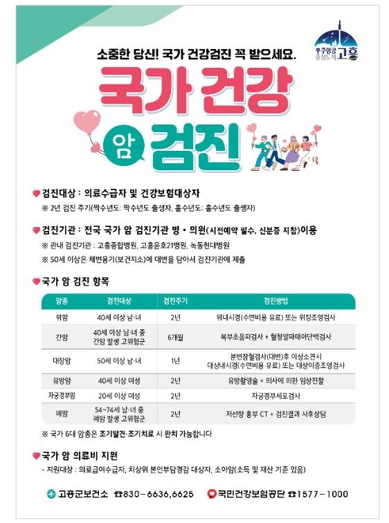• 고흥군, 100세 건강의 시작... 올해 국가암검진 꼭 받으세요
