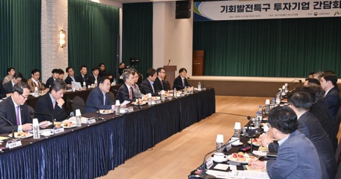 이 행사는 기회발전특구 투자기업의 투자 애로사항을 청취하고 관련기관이 협력해 해소 방안을 함께 모색하기 위한 자리로, 각 시·도에 투자 중인 10개사와 투자현황을 공유하고 투자 활성화 방안에 대해 논의했다.