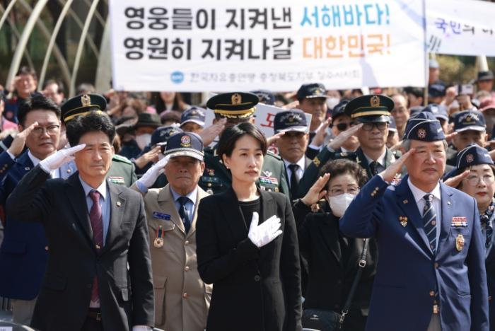 ‘서해를 지켜낸 영웅들, 영원히 기억될 이름들’을 슬로건으로 한 이날 기념식에는 김수민 정무부지사와 이양섭 도의장을 비롯한 충북 보훈 단체장, 일반시민 등 500여 명이 참석했으며,
