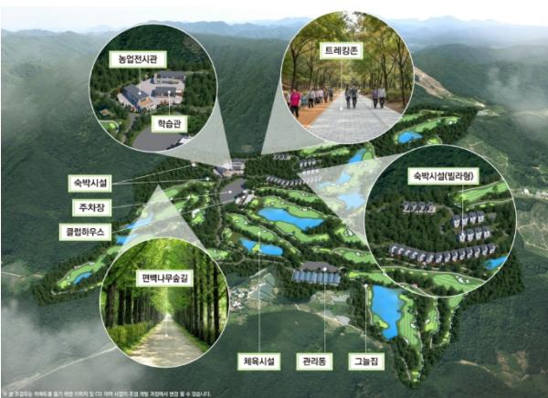 추풍령면 계룡리 일원에 조성될 농어촌관광휴양단지는 168ha 약 51만 평의 규모로, 농업전시관 및 학습관, 숙박휴양시설, 체육시설(골프장 27홀), 트레킹 둘레길 등 각종 체험시설 등을 조성할 예정이며, 각종 행정절차와 주민 의견 수렴 등을 거쳐 2028년 최종 개발계획을 수립하고 2030년 준공을 목표로 추진하고 있다.